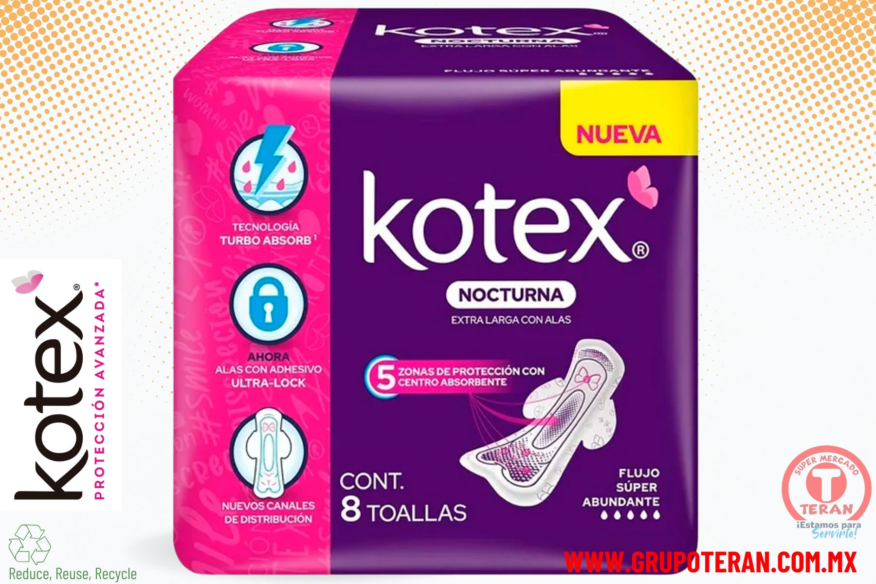 Toalla kotex rosa maxi nocturna 8 piezas